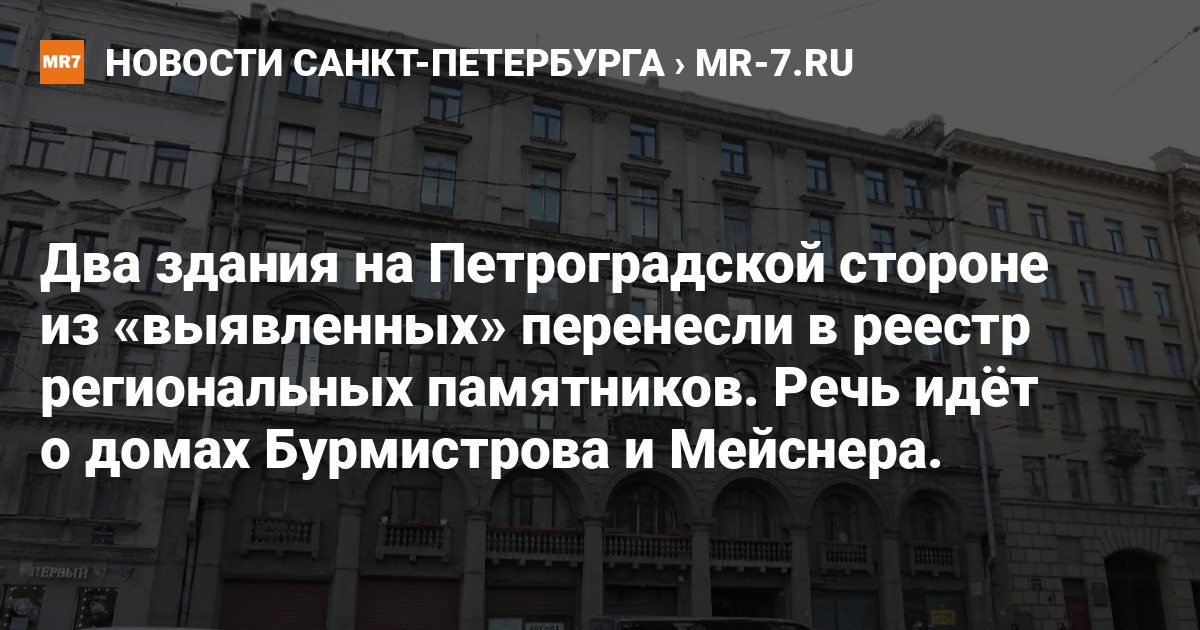 Два здания на Петроградской стороне признали объектами культурного наследия регионального значения, сообщили в пресс-службе КГИОП. Ранее оба значились в реестре «вновь выявленных объектов».