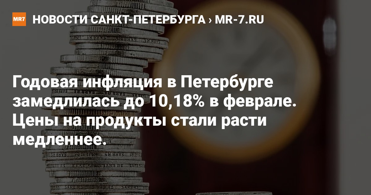 Годовая инфляция в Петербурге замедлилась с 11,51% в январе до 10,18% в феврале, следует из информационно-аналитического комментария Центробанка.