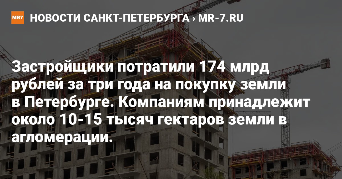 За три года застройщики приобрели 2,8 тысяч гектаров земли в Петербурге и ближайших пригородах, потратив на это порядка 174 млрд рублей, пишет «Деловой Петербург».