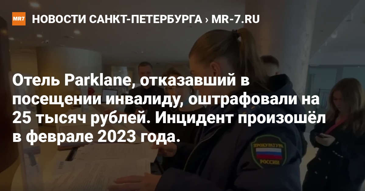 Отель Parklane Resort and Spa на улице Рюхина оштрафовали на 25 тысяч рублей за отказ в посещении СПА-центра мужчине с инвалидностью на коляске, сообщили в пресс-службе прокуратуры Петербурга.