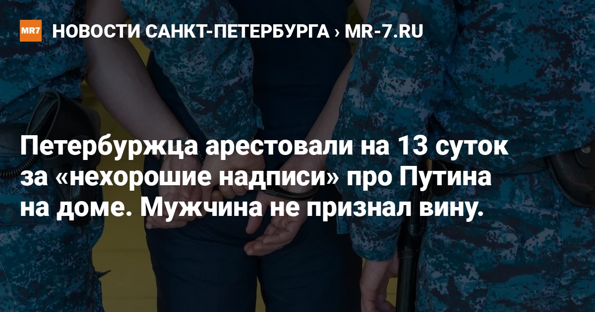 Петроградский районный суд арестовал на 13 суток петербуржца Александра Крылова. Его признали виновным в неповиновении требованию сотрудника полиции (часть 1 статьи 19.3 КоАП РФ), сообщили в объединённой пресс-службе городских судов.
