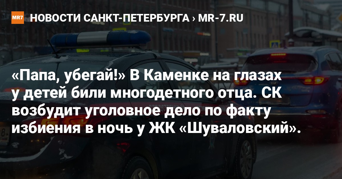 У жилого комплекса «Шуваловский» в ночь на 1 апреля избили 60-летнего мужчину на глазах у его детей. «Фонтанка» писала, что, по словам одного из сыновей, компания из трёх человек спровоцировала ДТП из-за парковочного места на улице Лидии Зверевой. Пенсионер хотел зафиксировать аварию, но на него бросились с кулаками.
