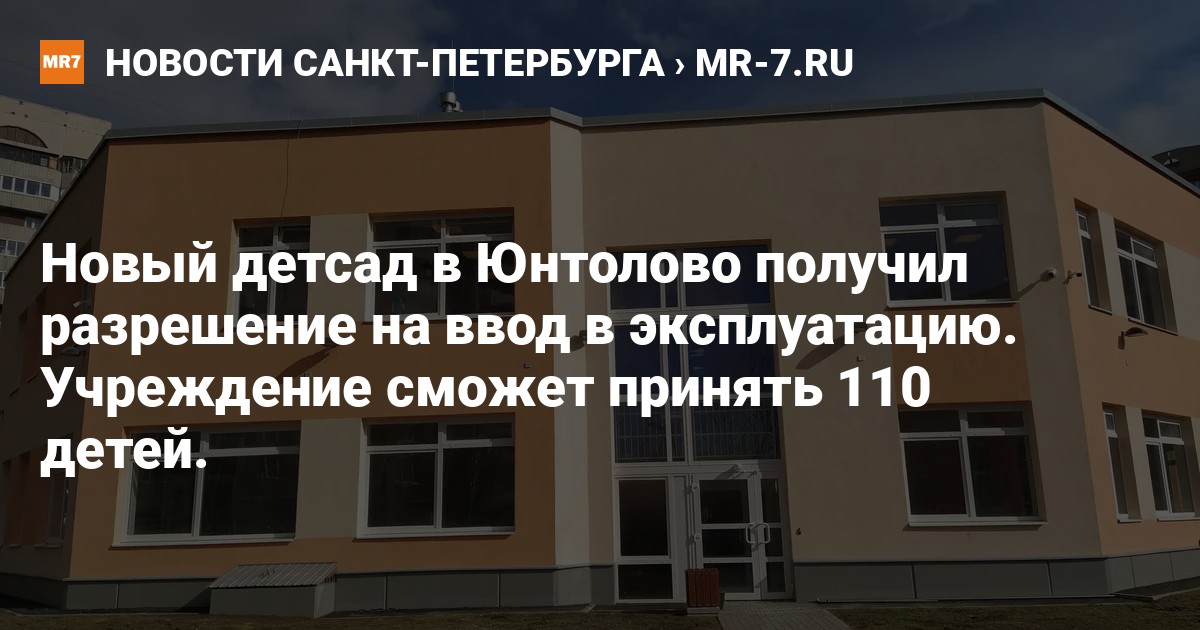 Новый детский сад в Юнтолово Приморского района получил разрешение на ввод в эксплуатацию, сообщили в пресс-службе Госстройнадзора Петербурга.