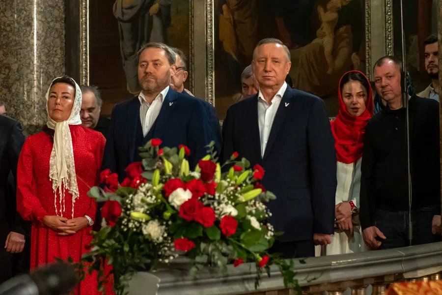 В храме собрались сотни человек. Среди них были губернатор Петербурга Александр Беглов и спикер Заксобрания города Александр Бельский.