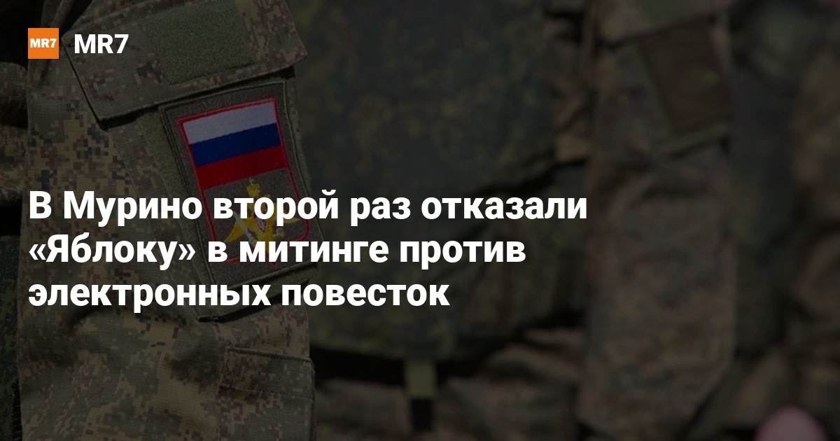 Власти города Мурино уже во второй раз отказались согласовать митинг против электронных повесток, который хотели провести представители партии «Яблоко». Заявители собираются оспаривать отказ в суде.