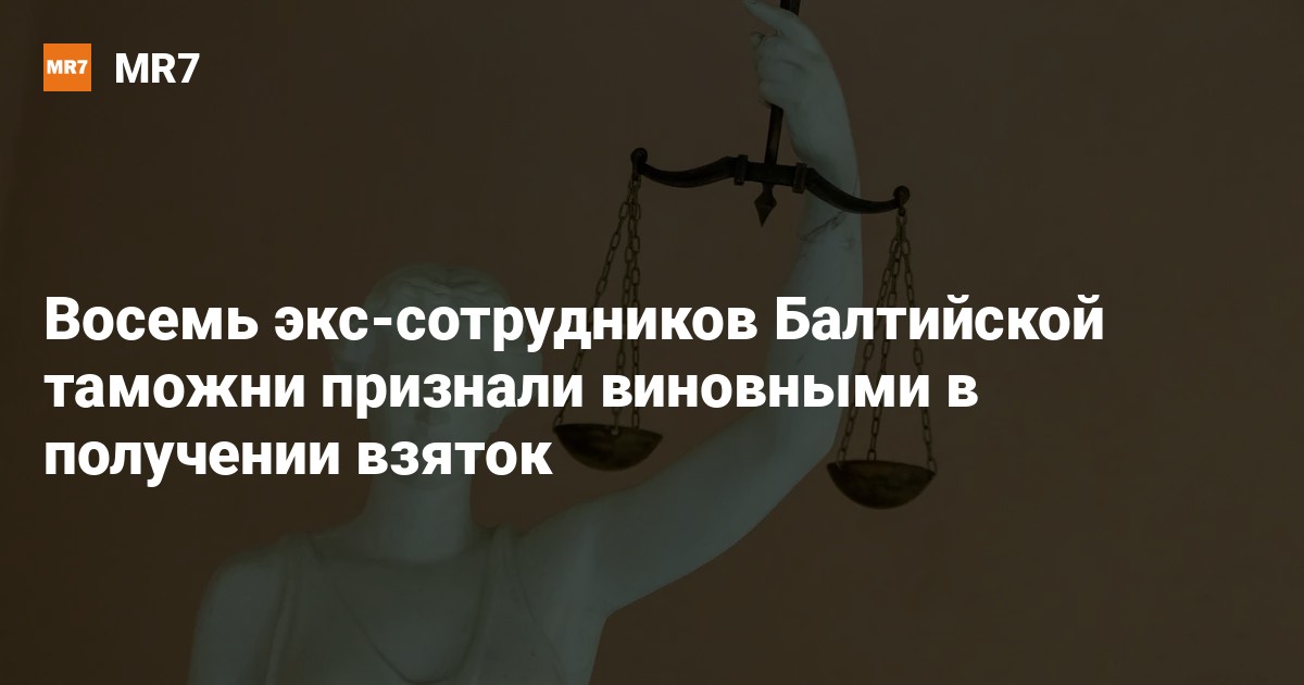 Восемь бывших сотрудников Балтийской таможни признали виновными в получении взяток, сообщили 24 апреля в пресс-службе Следственного комитета по Петербургу.