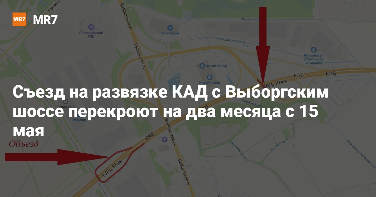 Движение по направлениям из Парголово и из Сертолово на внутреннее кольцо КАД будет закрыто с 15 мая по 13 июля.