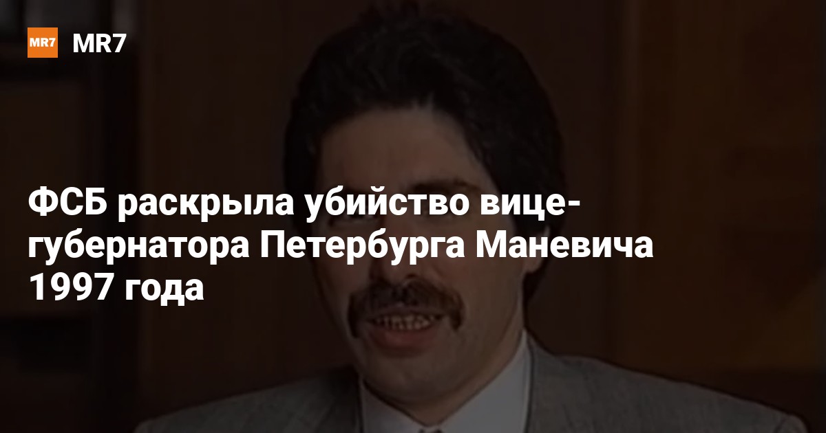 Федеральная служба безопасности (ФСБ) совместно с МВД установила причастных к заказному убийству бывшего вице-губернатора Петербурга Михаила Маневича, которое было совершено в 1997 году, пишет 30 апреля пресс-служба ведомства.