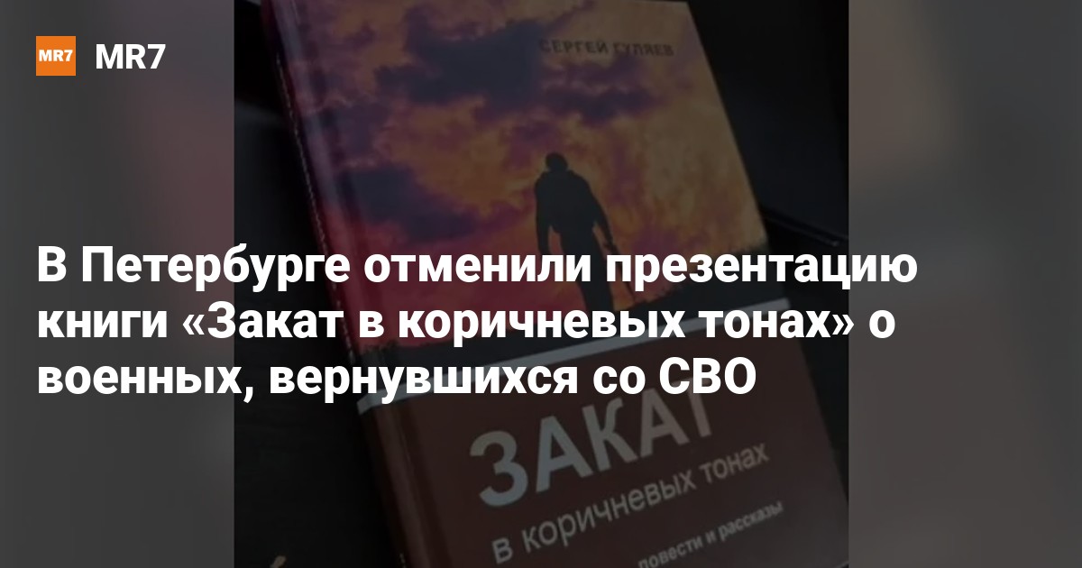 Презентацию художественной книги «Закат в коричневых тонах» авторства бывшего депутата ЗакСобрания Петербурга писателя Сергея Гуляева, сообщает 8 мая правозащитная организация «ОВД-Инфо»*.