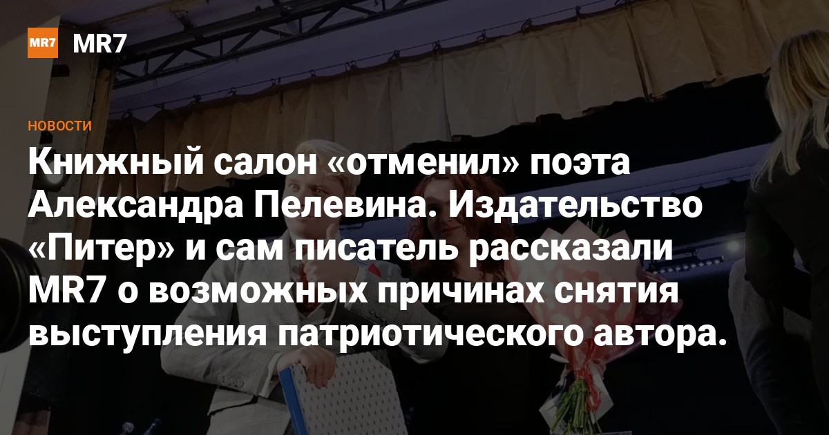 Книжный салон ещё не начался, а петербургского писателя Александра Пелевина с него уже «выгнали». В соцсетях Международного книжного салона выступление представителя патриотической литературы было анонсировано ещё 28 апреля — он, как и другие авторы сборника стихотворений «ПоэZия русского лета», должен был рассказать о «новой русской фронтовой поэзии» на презентации книги в первый день работы салона, 18 мая.