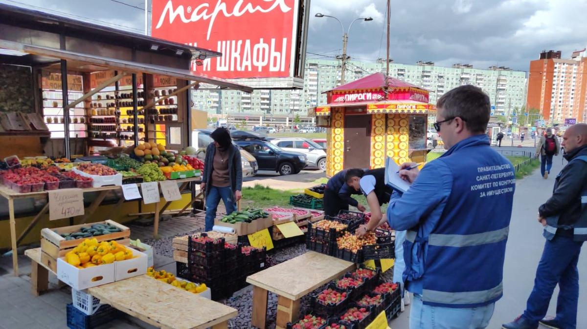 Так, пять прилавков, где продавались фрукты и овощи, обнаружили у станции метро «Проспект Большевиков», ещё два — на Народной улице. Также торговые павильоны нашли на улице Хошимина, проспектах Просвещения и Большевиков, около станции метро «Озерки».