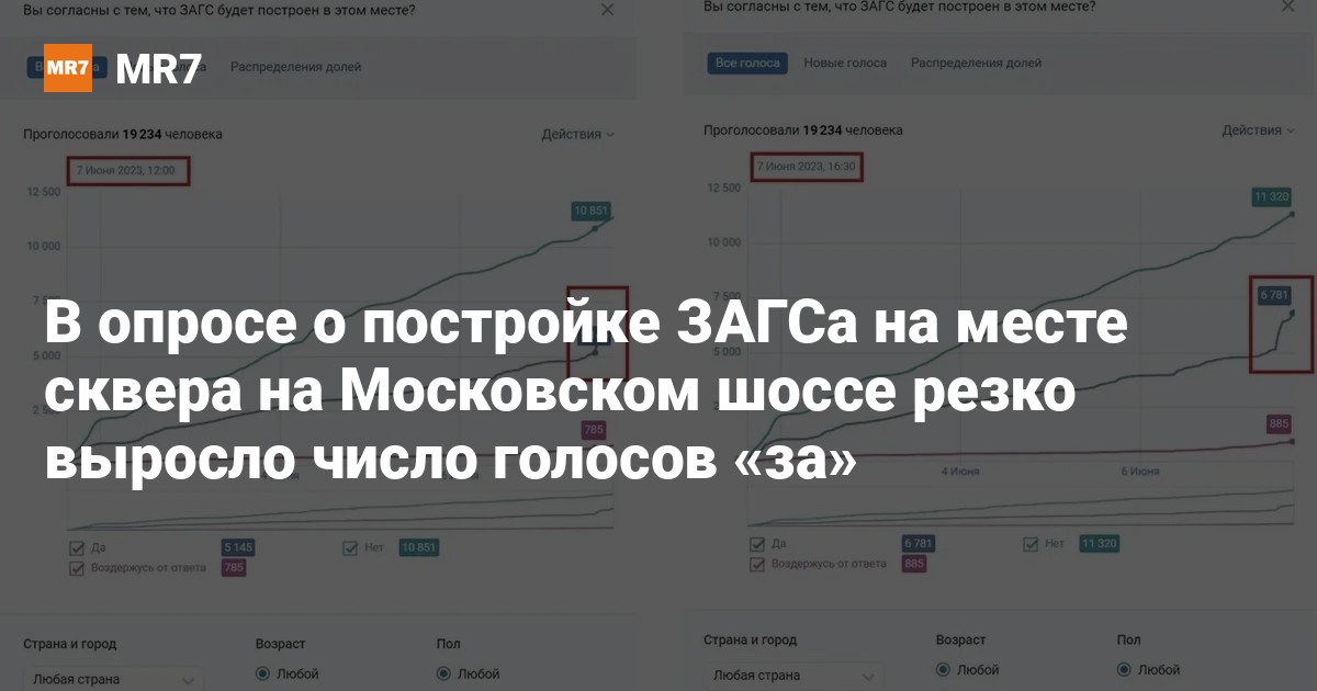 Число голосов за постройку Дворца бракосочетания выросло за два дня до завершения опроса. Проверка голосов показала, что многие аккаунты, проголосовавшие за, из разных городов и с однотипными постами на странице: за 4,5 часа проголосовали более 1,6 тысячи человек.
