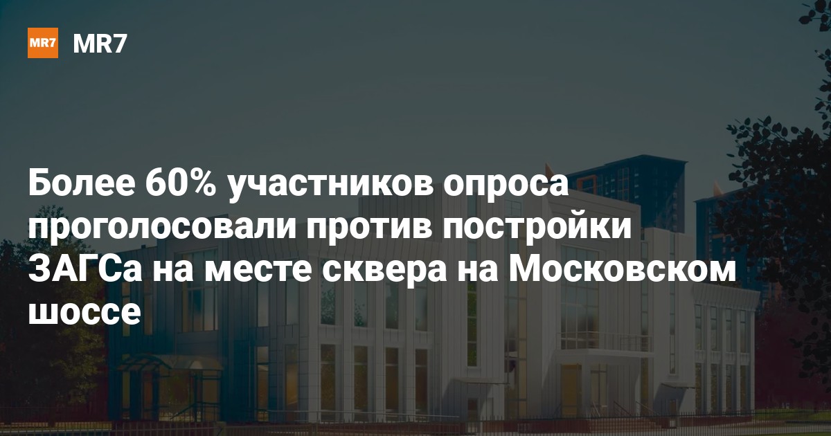 Администрация Московского района завершила опрос, посвящённый строительству нового здания ЗАГСа на месте сквера на Московском шоссе. В нём приняли участие 28 083 человека.