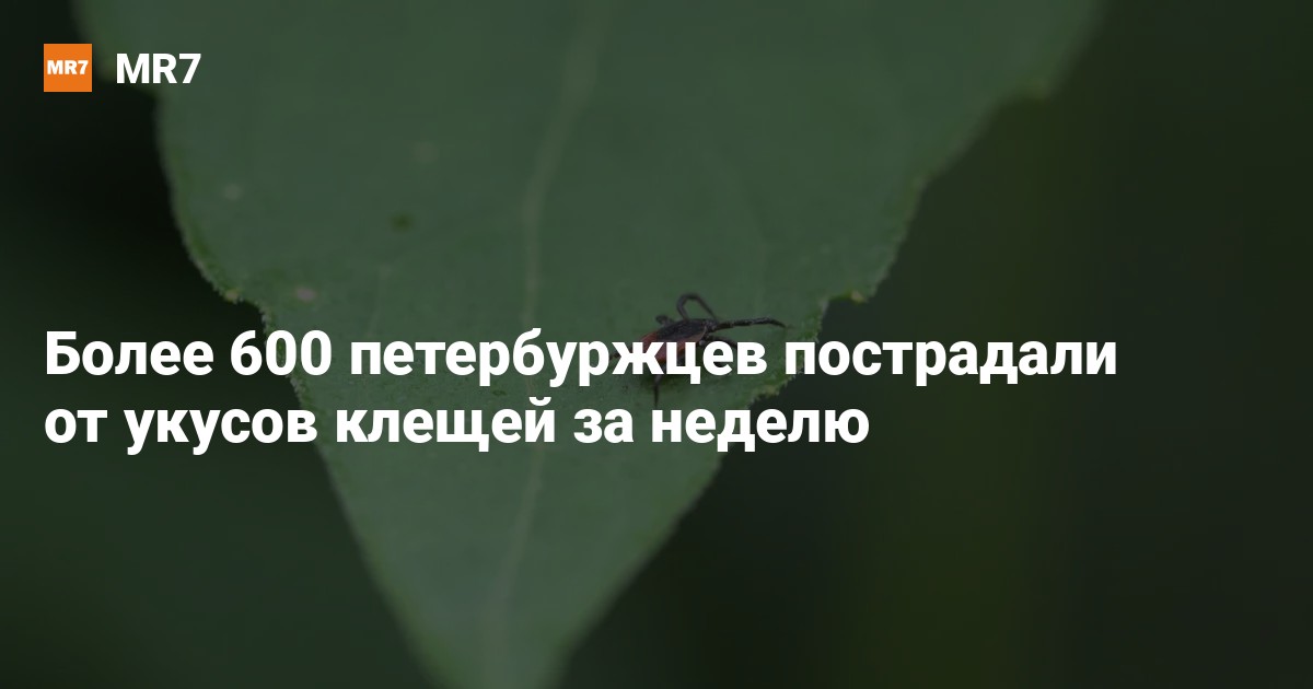 Непосредственно в черте города произошло 103 случая присасывания клещей. Больше всего — в Пушкинском, Курортном и Приморском районах. Меньше всего укушенных за последнюю неделю зафиксировали во Фрунзенском, Калининском и Кировском районах.