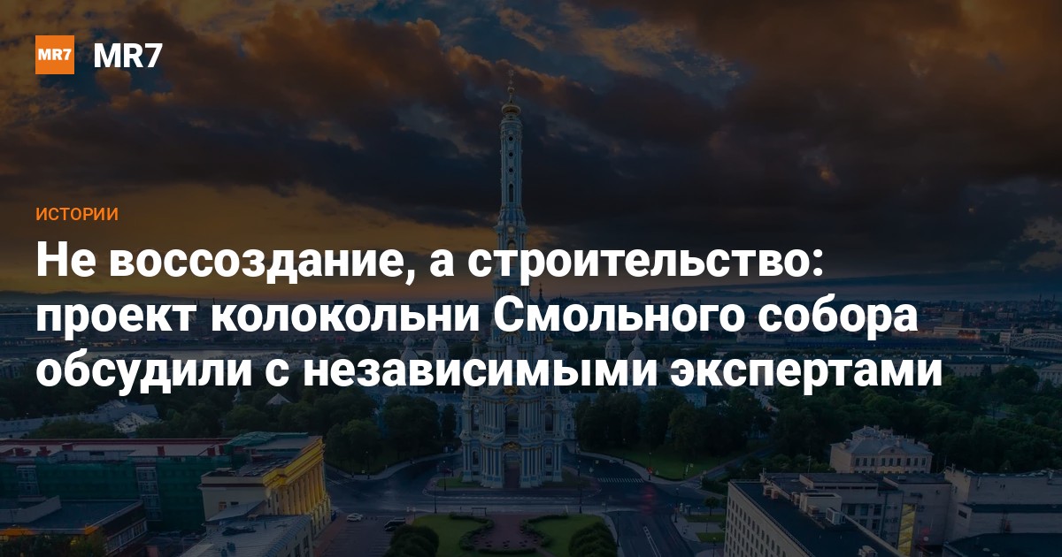 Вслед за Советом по сохранению культурного наследия Петербурга при правительстве города идею реализации несостоявшейся в полном объеме колокольни Смольного собора вынесли на обсуждение альтернативного, созданного градозащитниками Экспертного совета по сохранению исторического наследия. Независимые специалисты — архитекторы, активисты, депутат, историки — оказались пока не готовы к строительству 170-метровой колокольни в центре города.