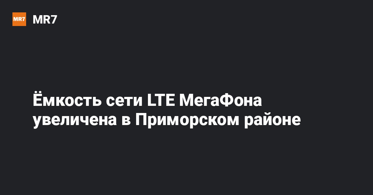 МегаФон увеличил емкость сети LTE в самом крупном по численности населения районе Петербурга — Приморском, где проживает порядка 700 тысяч человек. Теперь абонентам компании как в жилых массивах района, так и в зонах отдыха на берегу Финского залива доступны более высокие скорости мобильного интернета.