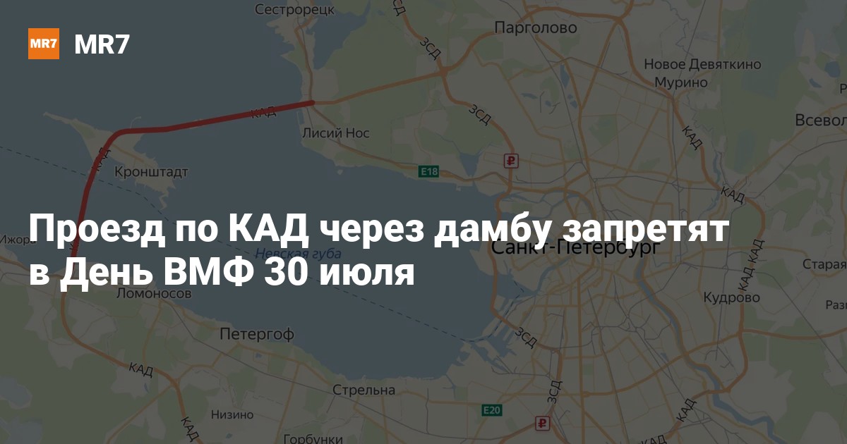 В Петербурге сквозной проезд по кольцевой автодороге (КАД) через комплекс защитных сооружений (КЗС) запретят 30 июля из-за проведения Главного военно-морского парада, предупредили в ФКУ Упрдор «Северо-Запад».