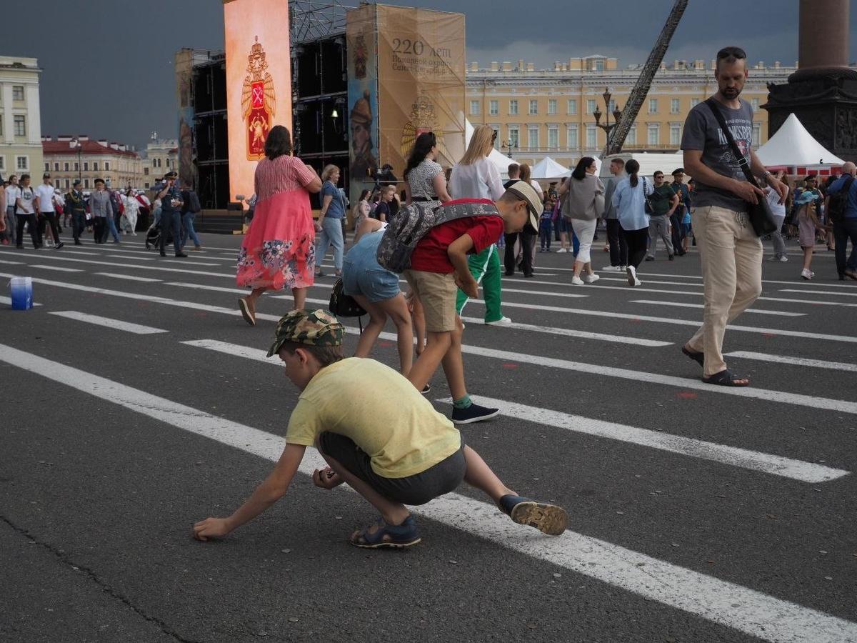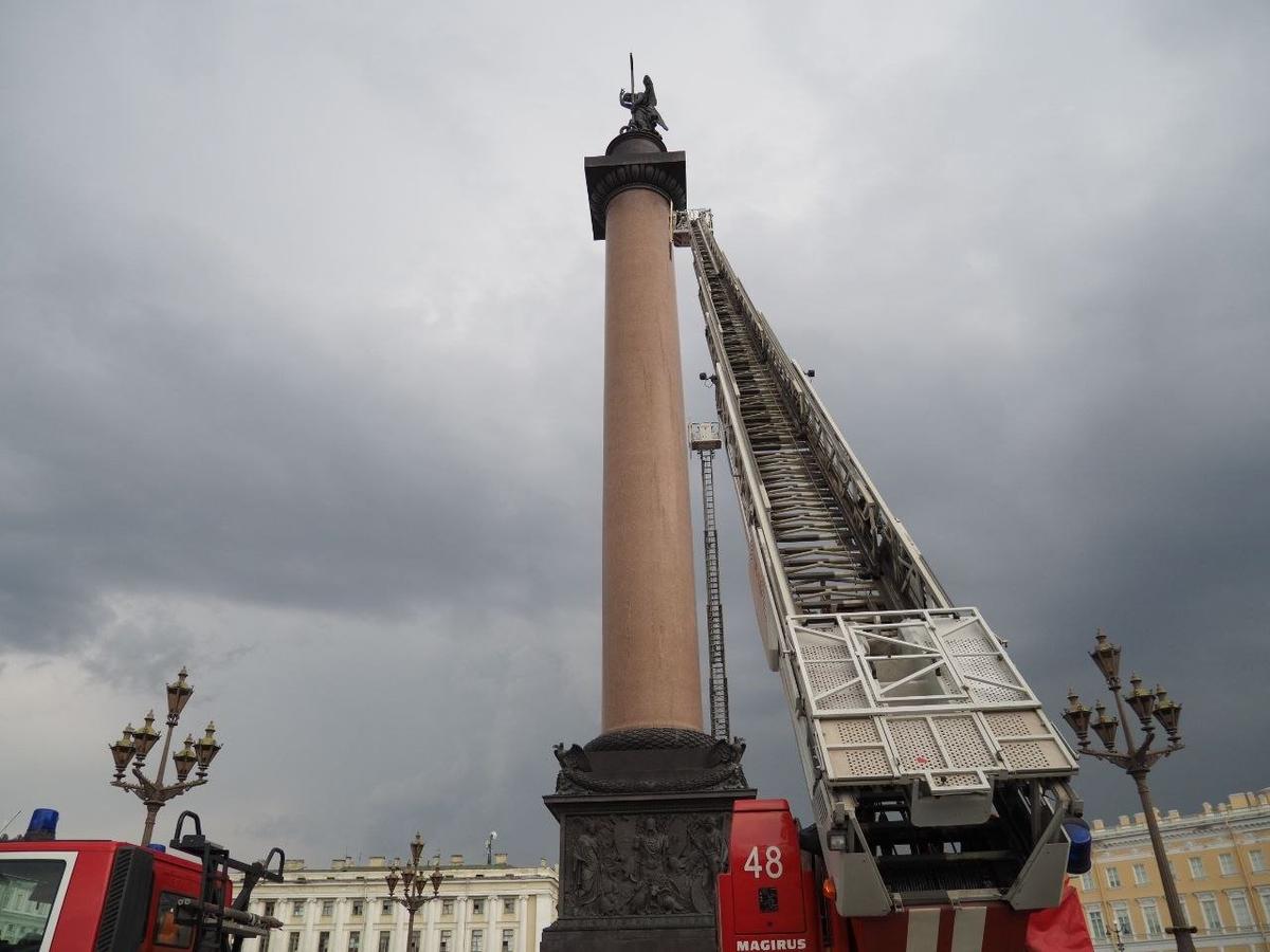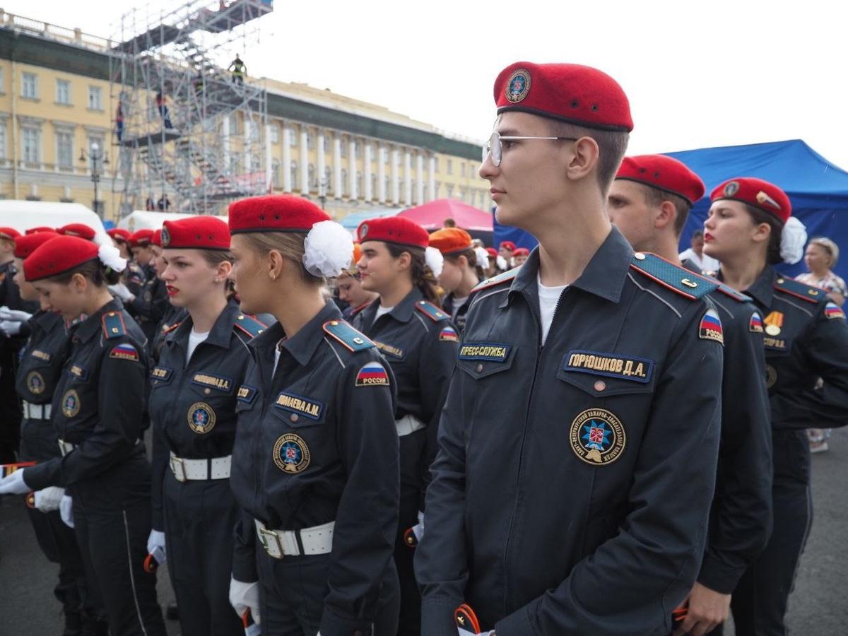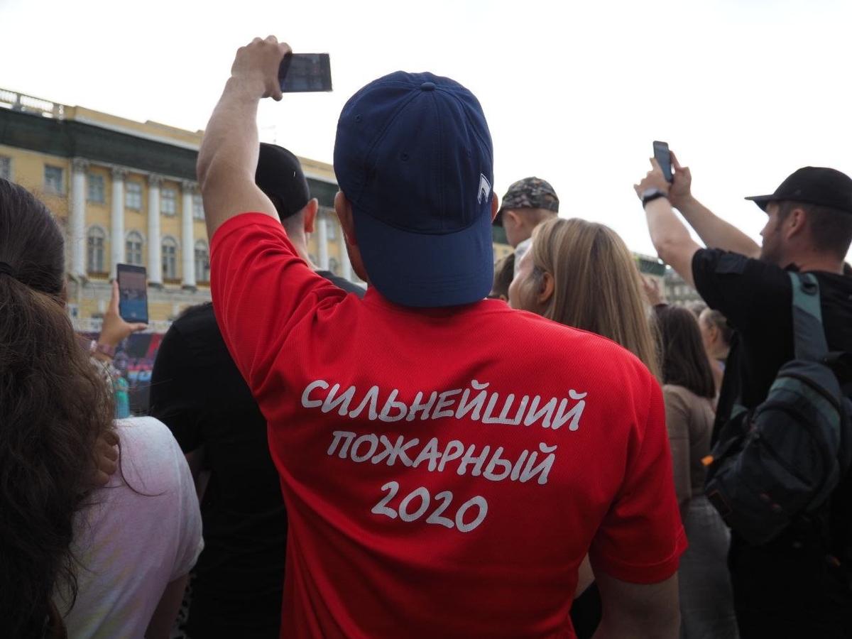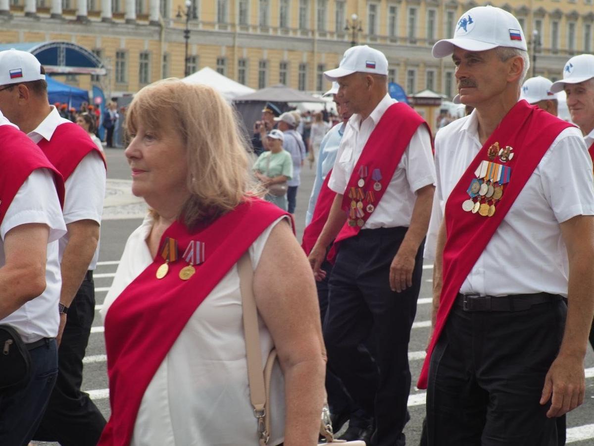 На Дворцовой площади показали старую и современную пожарно-спасательную технику. По брусчатке прошли расчёты пожарно-спасательных подразделений города, ветераны пожарной охраны и курсанты.