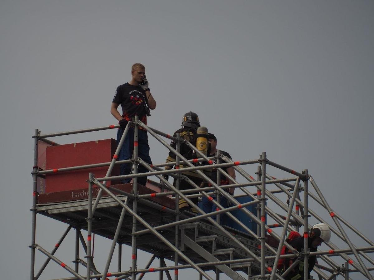 Также на площади состоялись показательные выступления и соревнования спасателей. Маленькие посетители праздника также могли почувствовать себя пожарными, облачившись в защитный костюм спасателя и поливая площадь из шланга.