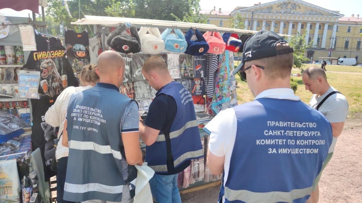 Так, на Дворцовой площади, у станции метро «Адмиралтейская» и на Дворцовой набережной обнаружили торговые модули, в которых предлагали купить сувениры. Также на Дворцовой площади незаконно продавали экскурсионные билеты.