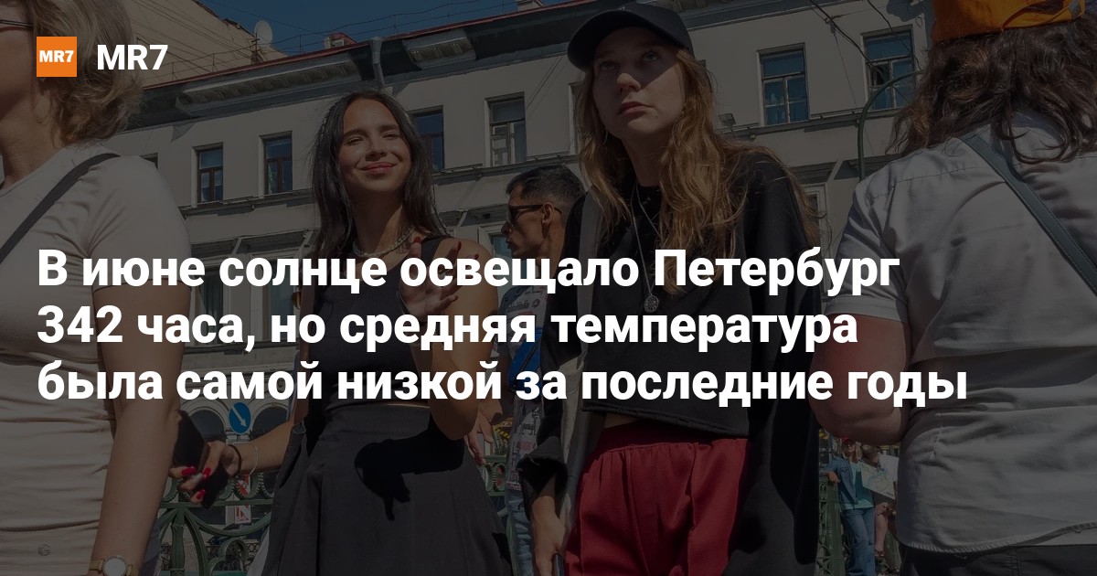 Средняя температура воздуха в июне в Петербурге составила +17,2 градуса. Как сообщил главный синоптик города Александр Колесов, это самое низкое значение за последние четыре года.