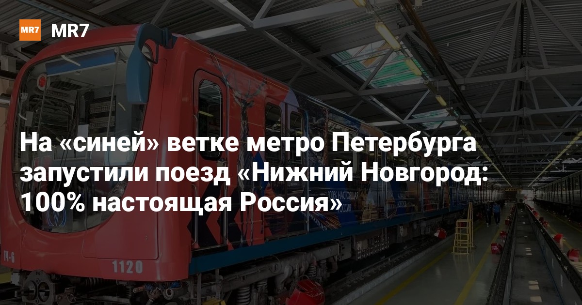 На «синей» ветке метро Петербурга начал курсировать тематический поезд под названием «Нижний Новгород: 100% настоящая Россия». Как сообщили 6 июля в пресс-службе комитета по транспорту, прокатиться на нём можно будет до января 2024 года.