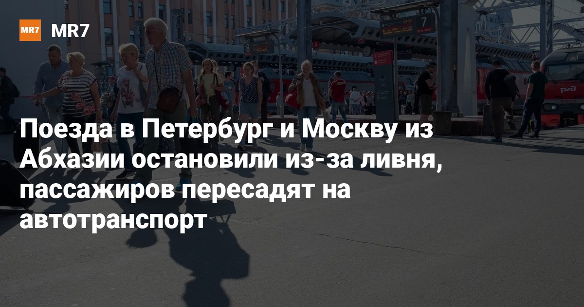 Поезда №№ 480 (в Петербург) и 306 (в Москву) в воскресенье, 9 июля, остановили в пути. Пассажиров доставили автобусами до станции Цандрипш, откуда они проследуют в пункты назначения. Специальный поезд отправился в 8:00 10 июля.