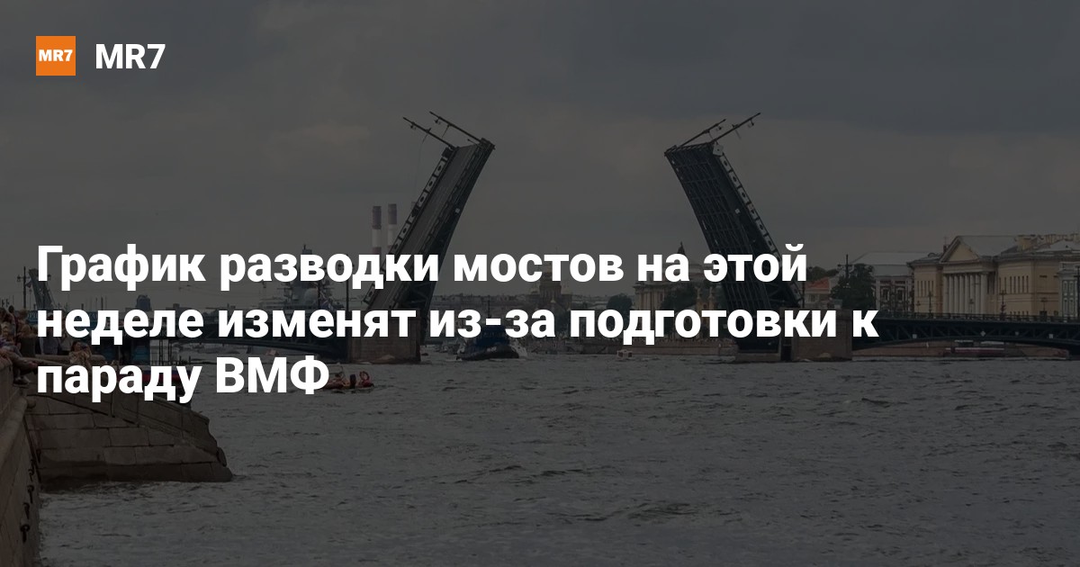 В связи с подготовкой к проведению Главного военно-морского парада (ГВМП) в Петербурге изменится график разводки мостов, сообщили в пресс-службе комитета по развитию транспортной инфраструктуры.