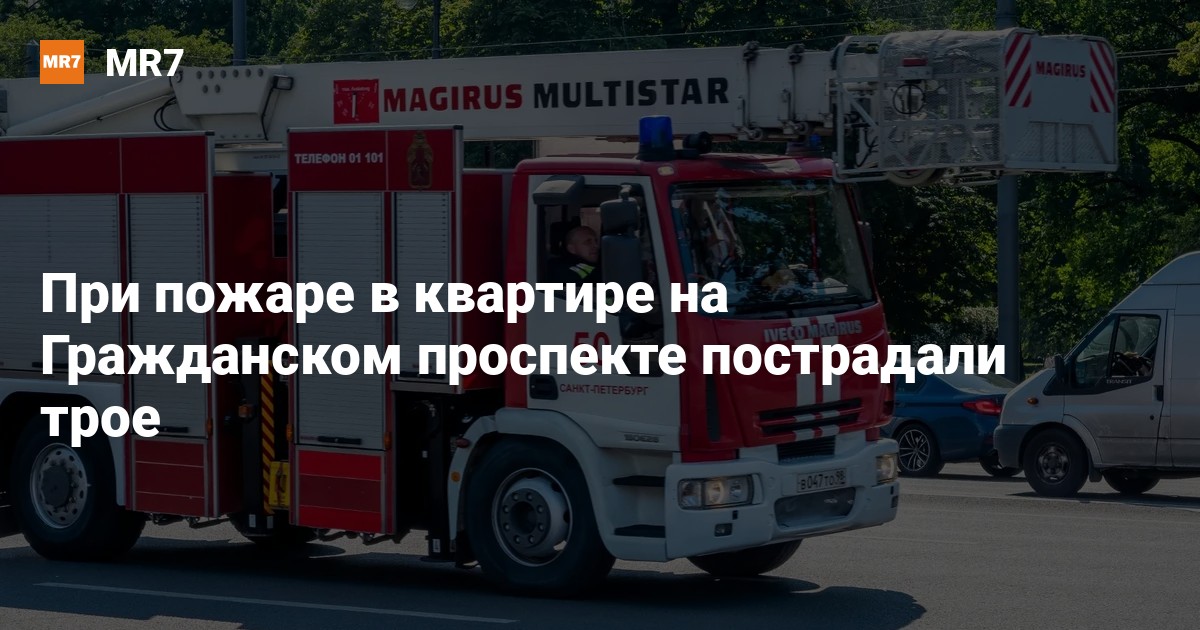 На Гражданском проспекте, 75, корпус 1, загорелась четырёхкомнатная квартира. Пожар охватил всю квартиру площадью 54 квадратных метра. Пострадали три человека, их эвакуировали и увезли в больницу.