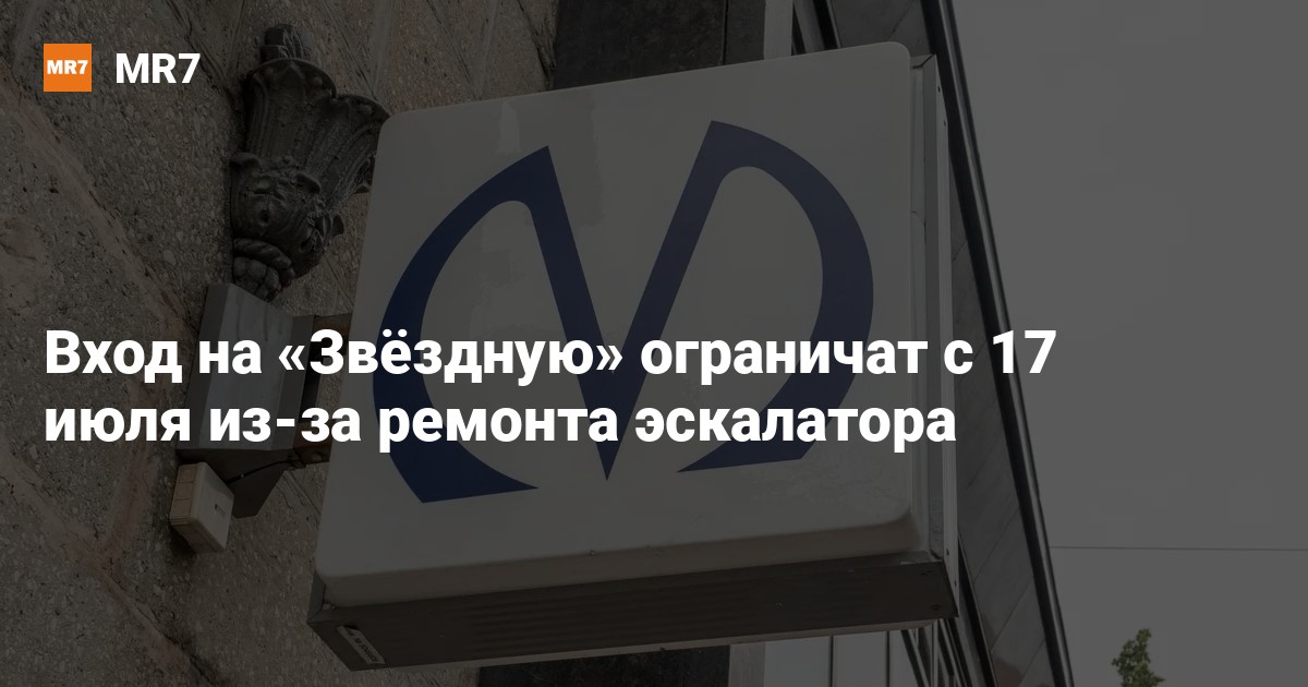 На станции метро «Звёздная» в понедельник, 17 июля, начнётся капитальный ремонт эскалатора, сообщает пресс-служба метрополитена.