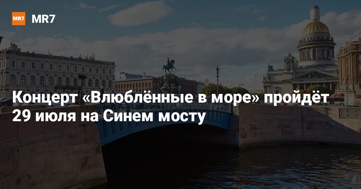 Праздничный концерт «Влюблённые в море» пройдёт в субботу, 29 июля, на Синем мосту в Петербурге. Как рассказали в пресс-службе Адмиралтейского района, мероприятие приурочено ко Дню Военно-морского флота.