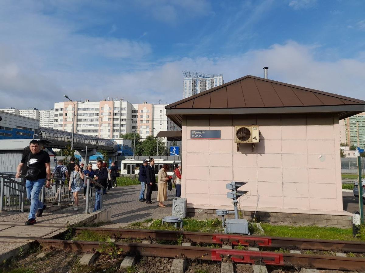 На станции «Шушары» народу также не слишком много, несмотря на то, что движение электричек на 27 и 28 июля в Шушары усилили, а жителям рекомендовали пользоваться данным видом транспорта для выезда из посёлка.