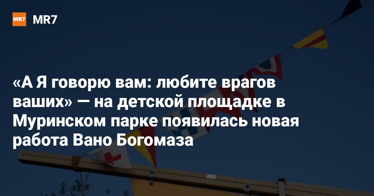Петербургский стрит-арт-художник Вано Богомаз разместил свою новую работу на детской площадке в Муринском парке. С помощью флагов Военно-морского свода сигналов Вано процитировал Евангелие от Матфея: «А Я говорю вам: любите врагов ваших».