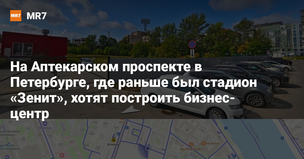 Застроить планируют территорию на Аптекарском проспекте, 16. Три участка общей площадью 1,7 гектара расположены между Аптекарским проспектом и проспектом Медиков. До 2016 года на этом месте располагался стадион «Зенит», а потом северную часть территории застроили жильём. В южной части хотели построить спорткомплекс, но от планов остался только забор.