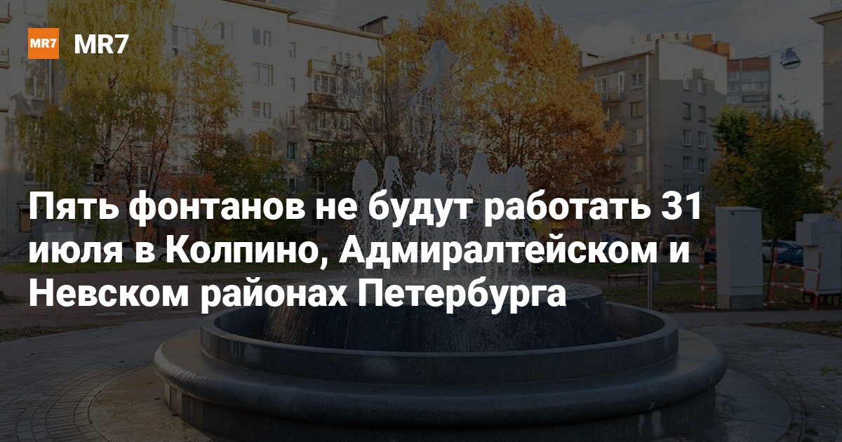 В понедельник, 31 июля, в Петербурге закроются на помывку и техническое обслуживание пять фонтанов. В пресс-службе городского Водоканала рассказали, по каким адресам они находятся.