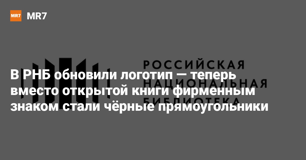 Новый логотип и фирменный стиль Российской национальной библиотеки появились у РНБ. Согласно информации с сайта библиотеки, новая эмблема состоит из семи чёрных «вертикалтных эллементов» на белом фоне (или белых на цветном). «В знак … заложено несколько образов: книги, книжные стеллажи, входная группа Нового здания на Московском проспекте, колонны корпуса Росси исторического здания, открытые двери в мир знаний», — уверены в РНБ.