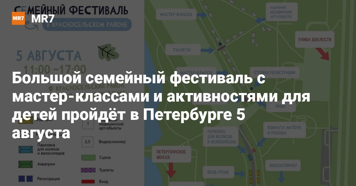 Большой семейный фестиваль пройдёт в субботу, 5 августа, в Южно-Приморском парке в Петербурге. Посетителей ждут квесты, лекции, спортивные игры и эстафеты.