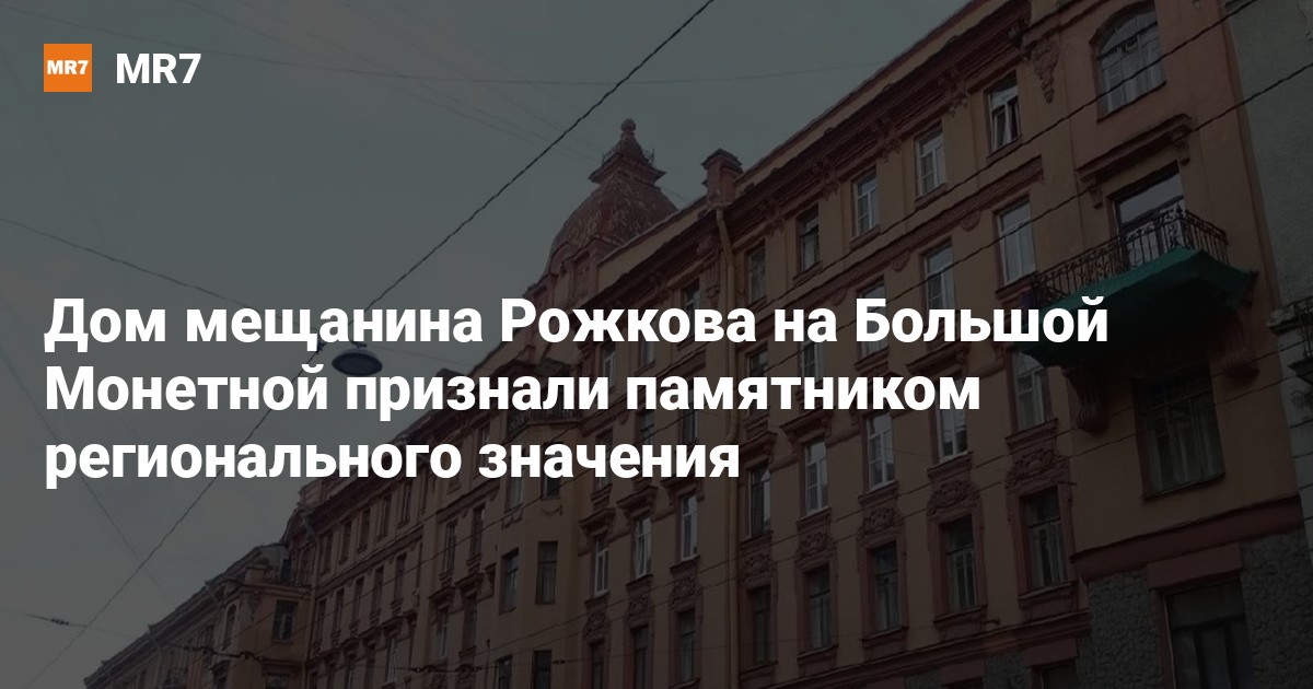 В реестр объектов культурного наследия регионального значения включили доходный дом Василия Рожкова на Большой Монетной улице, сообщили в КГИОП.