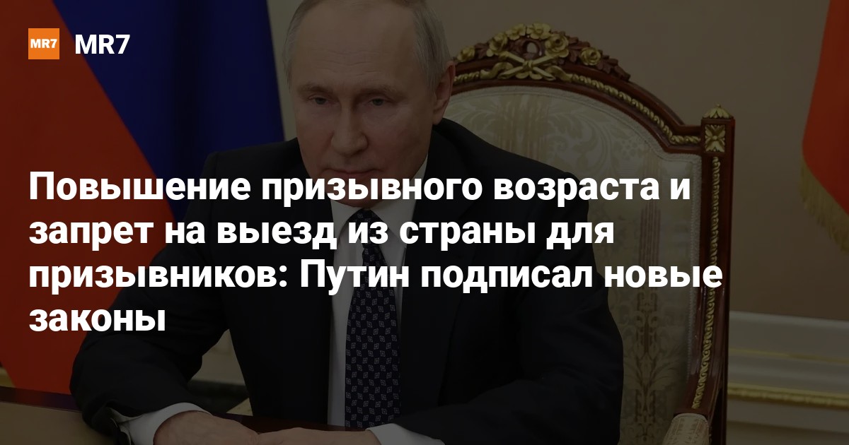 Президент России Владимир Путин в пятницу 4 августа подписал ряд законов, в числе которых закон о повышении призывного возраста и о запрете призывникам выезда за границу.
