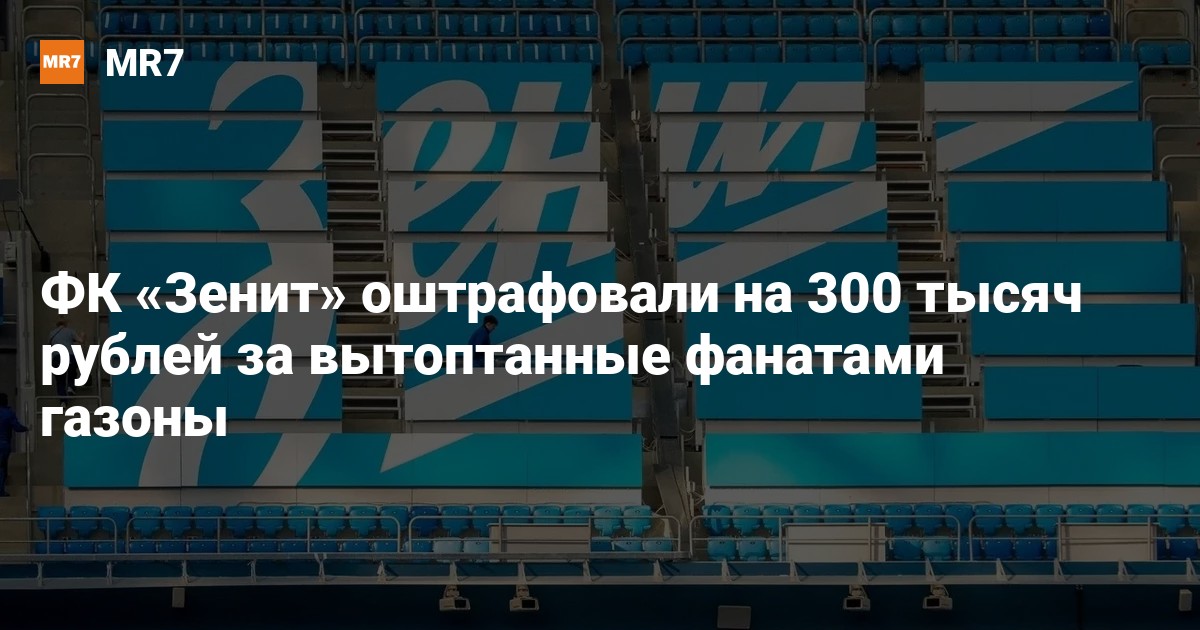 Петроградский районный суд Петербурга оштрафовал футбольный клуб «Зенит» на 300 тысяч рублей по статье 20.2.2 КоАП РФ (организация массового пребывания граждан в общественных местах, повлёкшая нарушение общественного порядка), сообщили в объединённой пресс-службе городских судов.