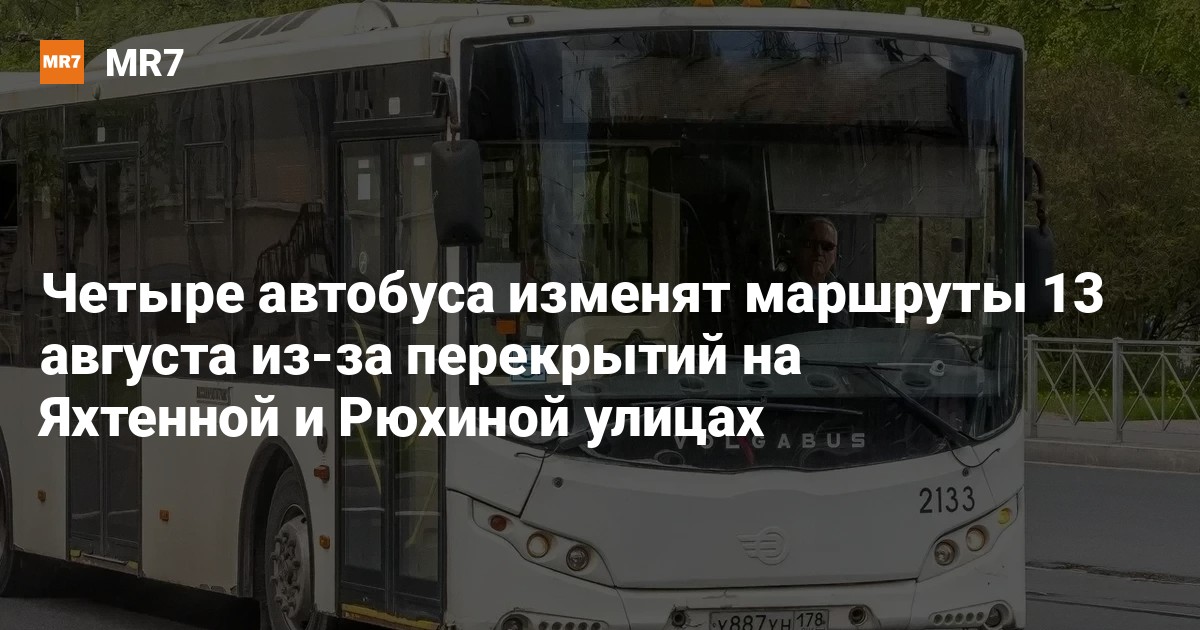 Трассы автобусных маршрутов № 29, 112, 134А и 134Б изменят на один день из-за ограничения движения транспорта по Рюхиной и Яхтенной улицам, сообщили в пресс-службе СПб ГКУ «Организатор перевозок».