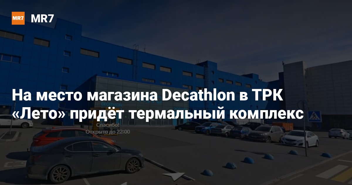 Вместо магазина французской компании Decathlon в торгово-развлекательном центре «Лето» на Пулковском шоссе в Петербурге откроется круглогодичный термальный комплекс. Как сообщает 14 августа «Деловой Петербург», его должны открыть уже в 2024 году.