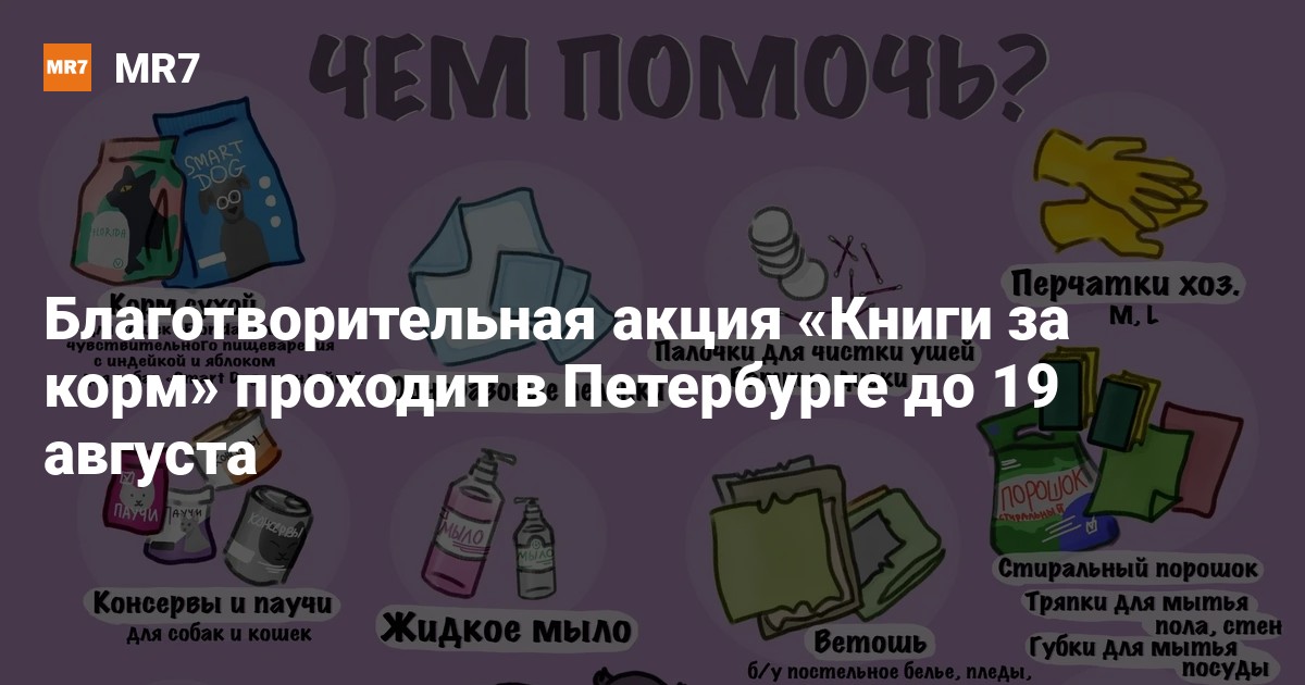 Цель инициативы — собрать вещи для бездомных кошек и собак, проживающих в приютах. Акцию организует библиотека «На Стремянной» в Центральном районе Петербурга, куда также можно принести корм и обменять его на книги до 20 августа.