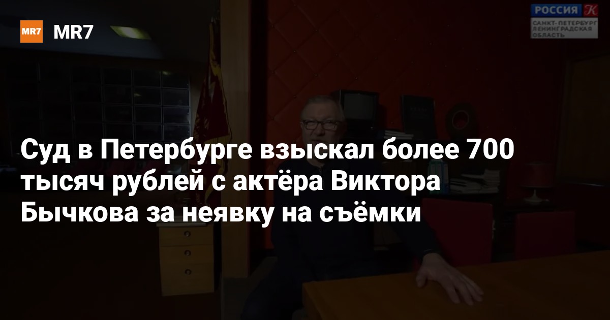 В Петербурге 17 августа суд взыскал более 700 тысяч рублей с актёра Виктора Бычкова за то, что тот не явился на съёмки телевизионной программы «Секрет на миллион». Артист не смог присутствовать из-за болезни жены.