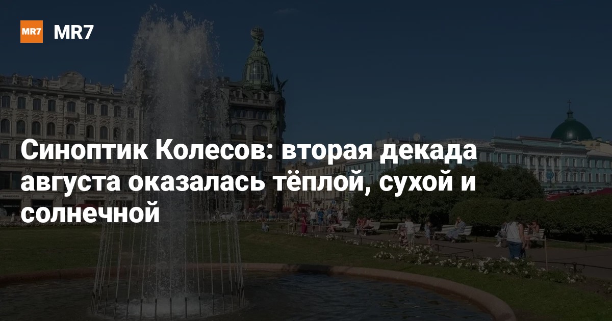 По его словам, вторая декада августа была «теплой, сухой и солнечной». Средняя температура воздуха составила +19,9 градуса. При этом осадков выпало мало — 11,9 мм, что составляет 14% от месячной нормы.