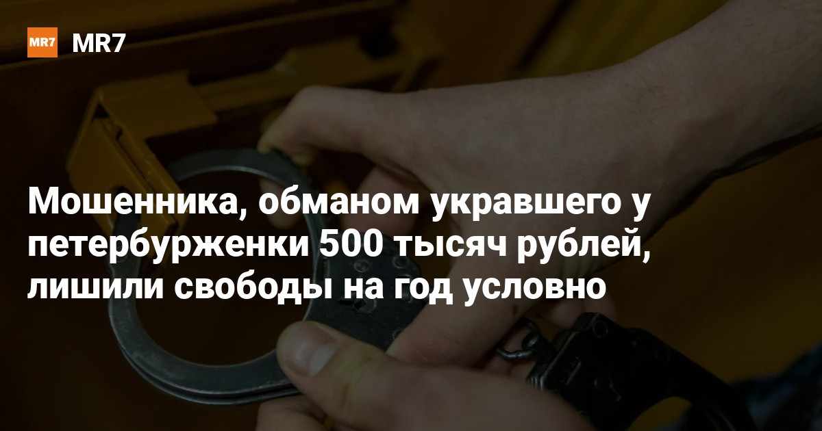 Курьера, забравшего у женщины 500 тысяч рублей, лишили свободы на год условно с таким же испытательным сроком, сообщили 22 августа в пресс-службе прокуратуры Кировского района Петербурга.
