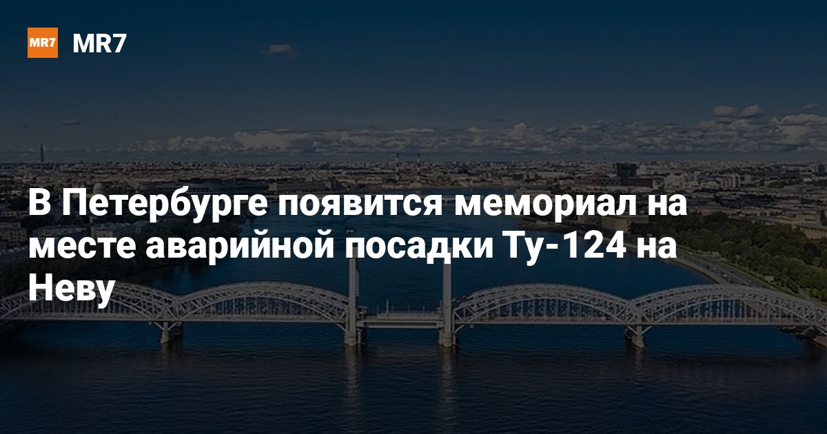 На месте аварийной посадки самолета Ту-124 на Неву, случившейся в 1963 году, создадут мемориал. Памятник планируют открыть в течение года на берегу реки у места посадки — на участке набережной проспекта Обуховской Обороны рядом с Финляндским железнодорожным мостом, сообщил ТАСС со ссылкой на автора концепции искусствоведа Любовь Елизаветину.