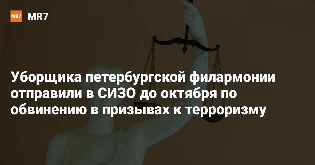 В Петербурге по делу о распространении проукраинских листовок заключили под стражу до 20 октября уборщика филармонии имени Шостаковича, пишет 23 августа объединённая пресс-служба городских судов.