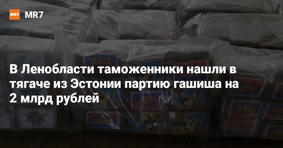 Таможенники из Ленобласти обнаружили 812 кг гашиша в прибывшем из Эстонии тягаче, общая стоимость изъятых наркотиков оценивается более чем в два миллиарда рублей. Об этом сообщила пресс-служба ведомства.