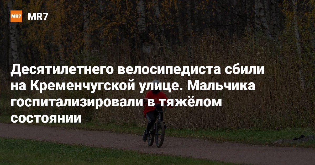 Юный петербуржец катался на велосипеде один во дворе у дома № 9/2 по Кременчугской улице в полдень 24 августа. Его сбил мужчина, управлявший автомобилем «Фольксваген Джетта». Мальчика госпитализировали в тяжёлом состоянии.